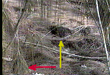 and resulting hummock. The red arrow is the direction that Daniel was laying.