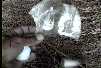 piece of windscreen complete with boulder residue. This is the infamous piece